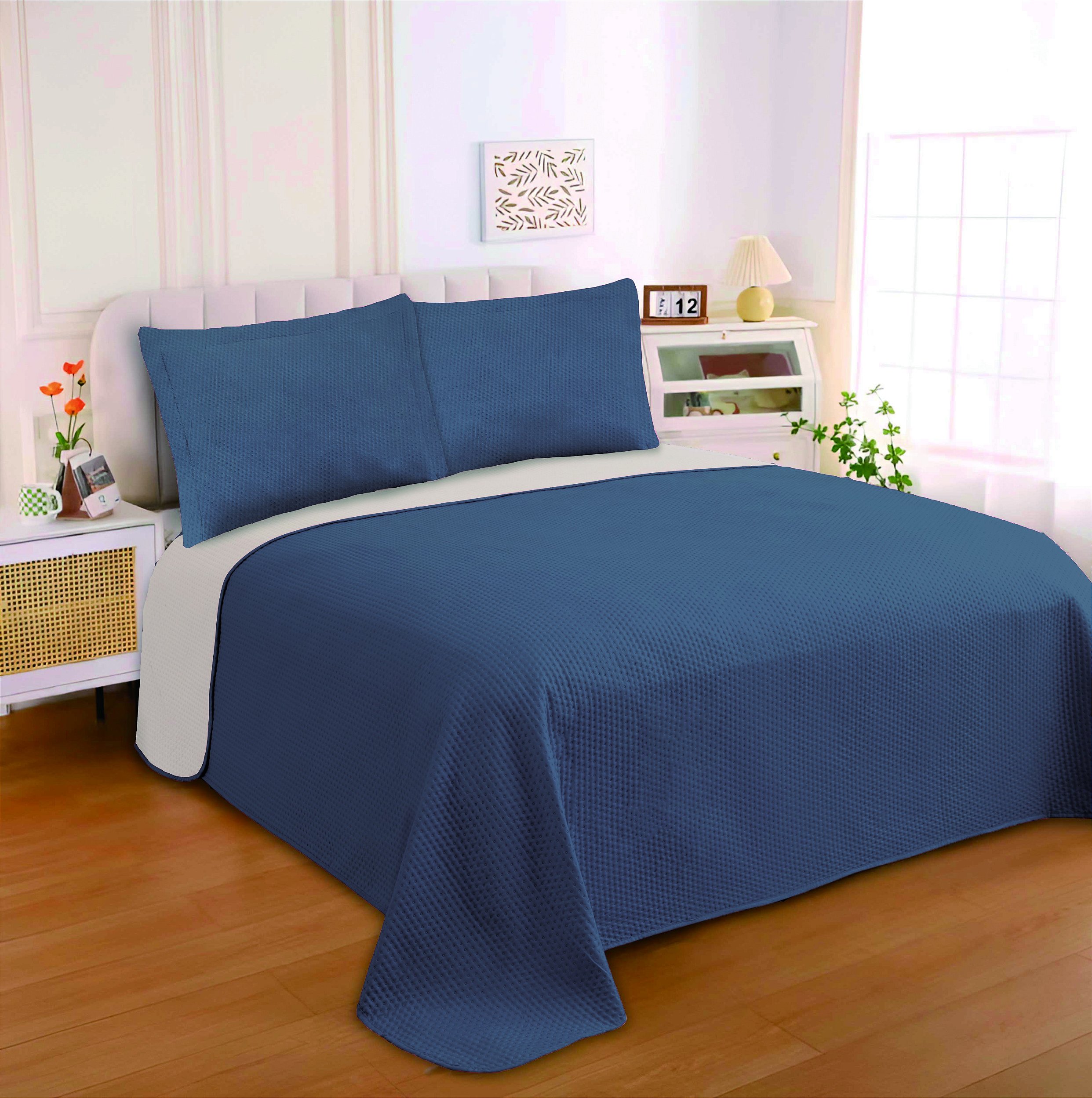 Kit Colcha 3 Peças Duo Dupla Face Ultrassonic Marinho Sultan